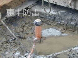 *如果在岩石地带,或大型地网,若采用垂直深井接地方式,可以将多根离子电极垂直连接(放热焊接),如4根为一组,构成为12m的离子接地电极,此时,需要钻出相应的孔洞。