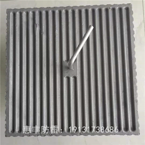 4.地电位反击:碳凝接地电极两极板导流波纹成正交方向同时四周封边汇流,在本体受到大电流冲击时,正交的导流纹与封边的汇流,本体的分布电容,从而冲击电流充分而平缓释的放到大地土壤,避免了地电位反击的危害。